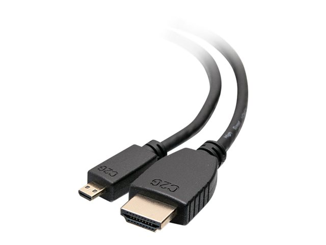 Produktbeskrivelse C2G 10ft HDMI to Micro HDMI Cable with Ethernet - 1080p - M/M - HDMI-kabel med Ethernet - 3.05 m Kabel HDMI-kabel med Ethernet Teknologi Afskærmet AWG American Wire Gauge 30 Kabel længde 3.05 m Farve Sort Forbindelsesled 19 pin micro HDMI Type D - han Stikforbindelse (anden ende) HDMI - han Egenskaber HDMI Ethernet Channel (HEC), HDMI CEC support (Consumer Electronics Control), Dolby DTS-HD support, 32 audiokanaler Producentgaranti Begrænset livtidsgaranti -