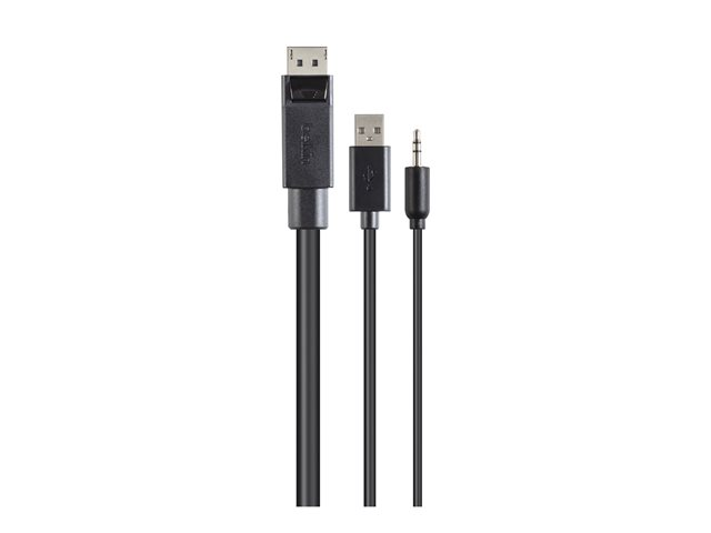 Tastatur- / mus- / video- / lydkabel - TAA-kompatibel - USB, ministik, DisplayPort (han) til mini-phone stereo 3.5 mm, USB Type B, DisplayPort (han) - 3.04 m - sort