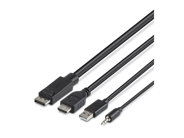Video / USB / lydkabel - TAA-kompatibel - USB, ministik, HDMI, DisplayPort (han) til USB Type B, ministik, HDMI, DisplayPort (han) - 3.05 m - passivt, 4K support - sort
