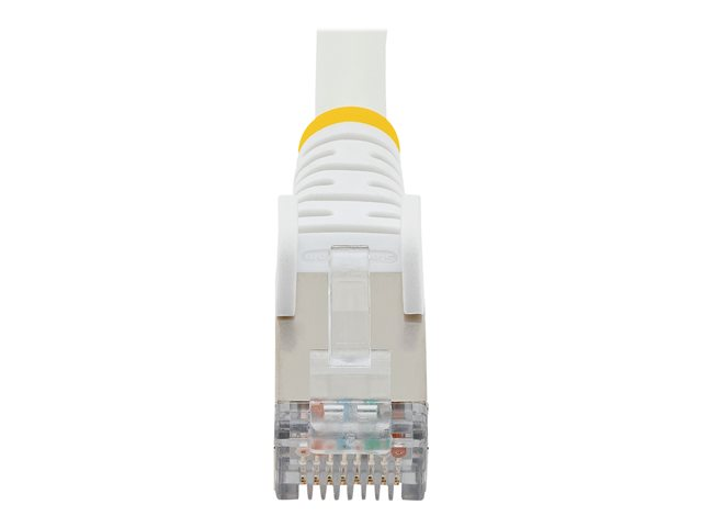 White - Low Smoke Zero Halogen (LSZH) - 10GbE 500MHz 100W PoE++ Snagless RJ-45 w/Strain Reliefs S/FTP Network Patch Cord - Patchkabel - RJ-45 (han) til RJ-45 (han) - 1 m - S/FTP - CAT 6a - IEEE 802.3bt - halogenfri, formet, knastfri, strenget - hvid