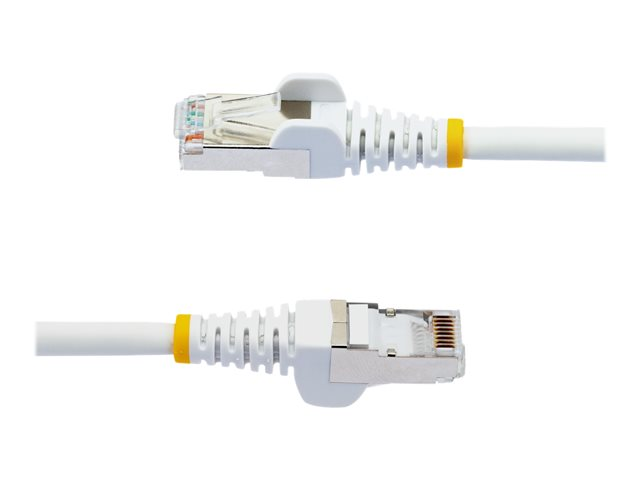 White - Low Smoke Zero Halogen (LSZH) - 10GbE 500MHz 100W PoE++ Snagless RJ-45 w/Strain Reliefs S/FTP Network Patch Cord - Patchkabel - RJ-45 (han) til RJ-45 (han) - 7.5 m - S/FTP - CAT 6a - IEEE 802.3bt - halogenfri, formet, knastfri, strenget - hvid