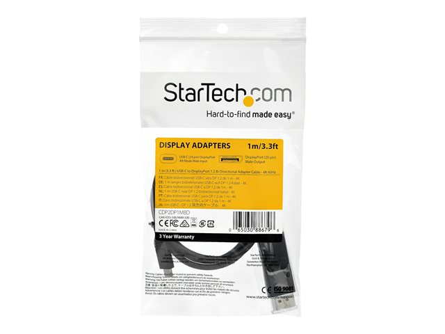 StarTech.com 3ft (1m) USB C to DisplayPort 1.2 Cable 4K 60Hz, Bidirectional DP to USB-C or USB-C to DP Reversible Video Adapter Cable, HBR2/HDR, USB Type C/Thunderbolt 3 Monitor Cable