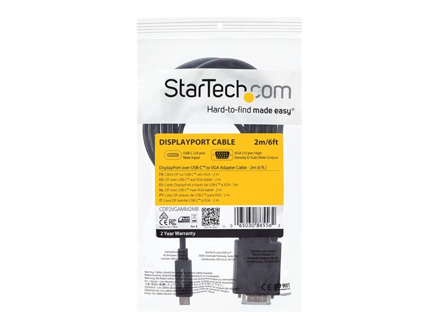 2m USB-C Video Cable (CDP2VGAMM2MB) - Video / USB kabel - USB-C (han) til HD-15 (VGA) (han) - 2 m - 1920 x 1200 (WUXGA) support - sort - for P/N: TB4CDOCK