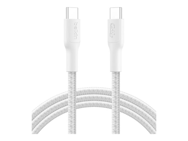 24 pin USB-C (han) til 24 pin USB-C (han) - 2 m - USB Power Delivery (240 W), flettet kabel - hvid