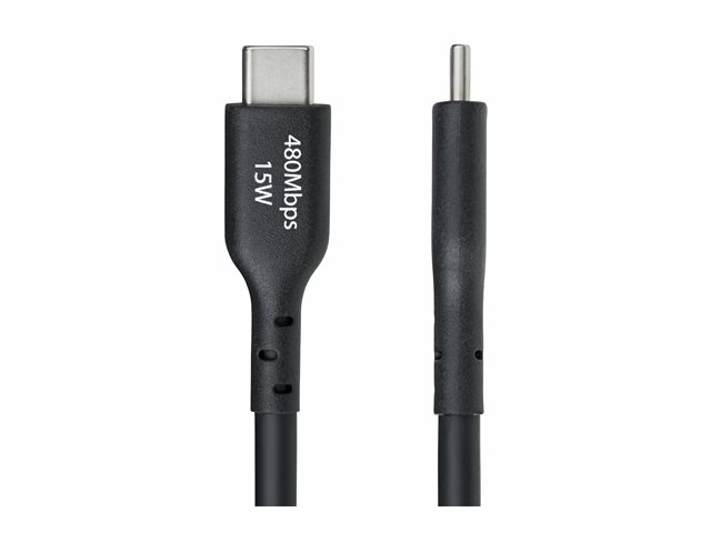This USB-C cable adheres to USB 2.0 standards, supporting a data rate of 480 Mbps for quick file transfers. Featuring a rated current of 3 A, it is capable of USB Fast Charge (15W), allowing you to power your devices efficiently. The strain relief and EMI protection features enhance durability, making it ideal for frequent use. With a lifespan of 10,000 insertions, this cable serves as a long-lasting accessory for all your charging and syncing needs.