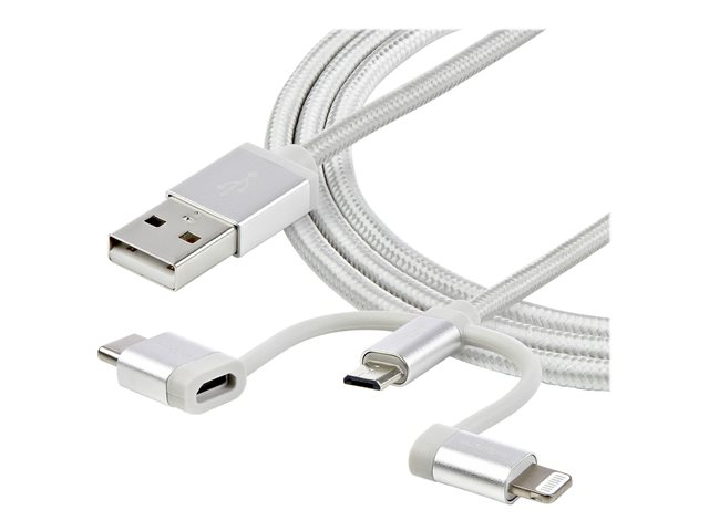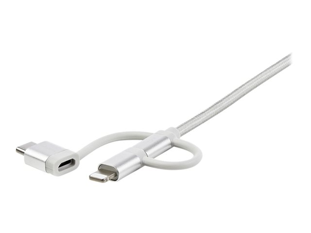 3.3 ft / 1m - Lightning / USB-C / Micro-USB - Braided - MFi Certified - USB 2.0 - 3 in 1 Charging (LTCUB1MGR) - USB-kabel - USB (han) til Micro-USB Type B, Lightning, USB-C (han) - 1 m - sølv