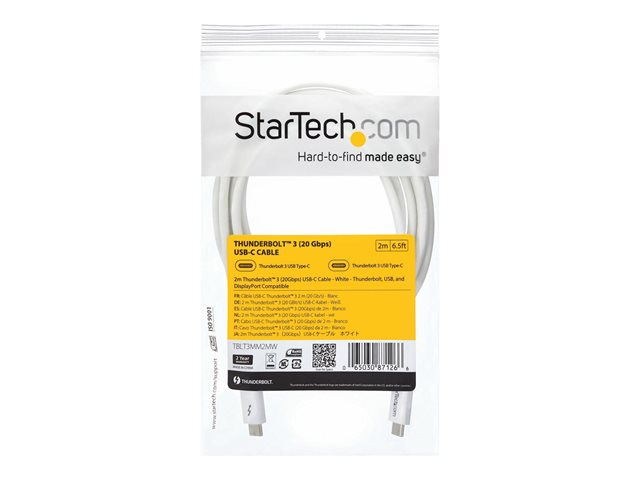 Thunderbolt kabel - USB-C (han) til USB-C (han) - USB 3.1 Gen 2 / Thunderbolt 3 / DisplayPort 1.2 - 2 m - 4K support - hvid - for P/N: CDP2HDUACP, CDP2HDUACPW