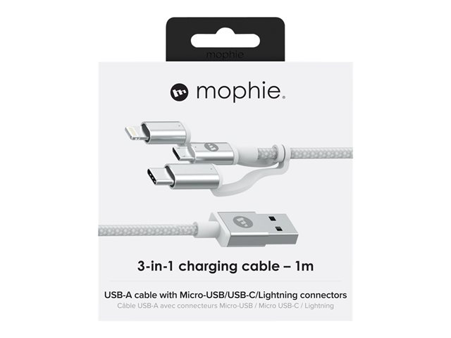 USB han til Micro-USB Type B, Lightning, USB-C han - 1 m - hvid