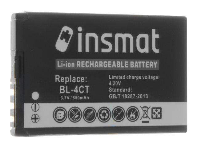 Produktbeskrivelse Insmat batteri - Li-Ion Produkttype Batteri Batteri Litiumion - 600 mAh Fabrikants batterinavn Nokia BL-4CT Designet for Nokia 2720 Fold, 5310 XpressMusic, 5630 XpressMusic, 6600 fold, 6700 Slide, 7210 Supernova, 7230, 7310 Supernova, X3-00 -
