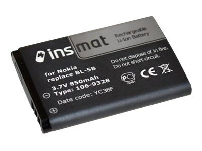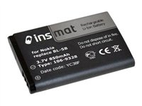 Produktbeskrivelse Insmat batteri - Li-Ion Produkttype Batteri Designet til Mobiltelefon Batteri Litiumion - 850 mAh Fabrikants batterinavn Nokia BL-5B Designet for Nokia 3220, 3230, 5140, 5140i, 5200, 5300 XpressMusic, 5320 XpressMusic, 5500, 6020, 6021, 6060, 6070, 6080, 6120 classic, 6124 classic, 7260, 7360, N80, N90 -