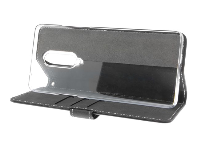 Flipomslag til mobiltelefon - ægte læder, papir, karton, polykarbonat, aluminumfolie - sort - for OnePlus 8