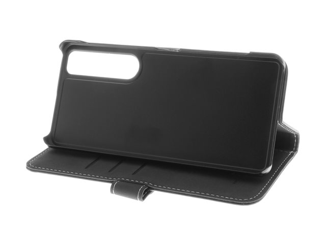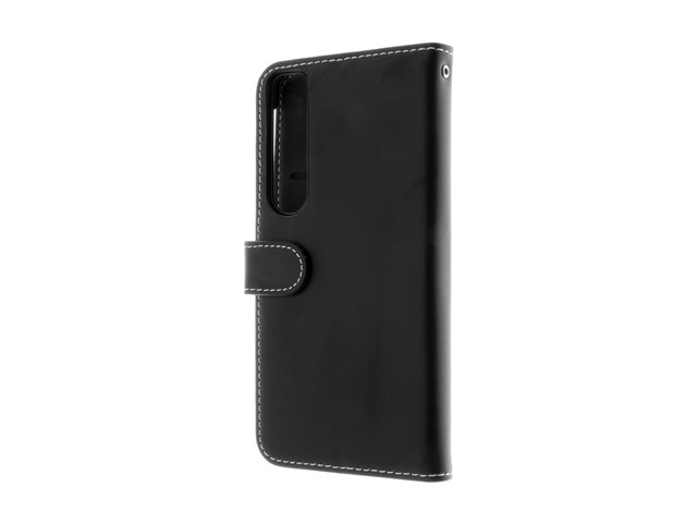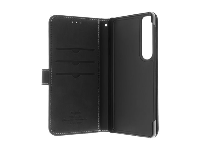 Flipomslag til mobiltelefon - ægte læder, pap+papir, polykarbonat, bomuldssyninger - sort - for Sony XPERIA 1 VI