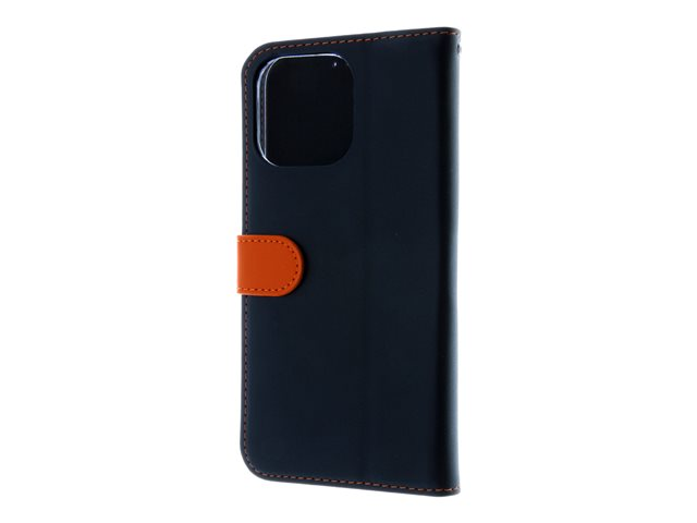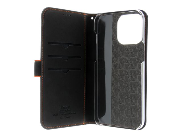 ægte læder, polykarbonat, karton+papir+aluminiumsfolie, bomuldssyninger - sort/orange - for Apple iPhone 15 Pro Max