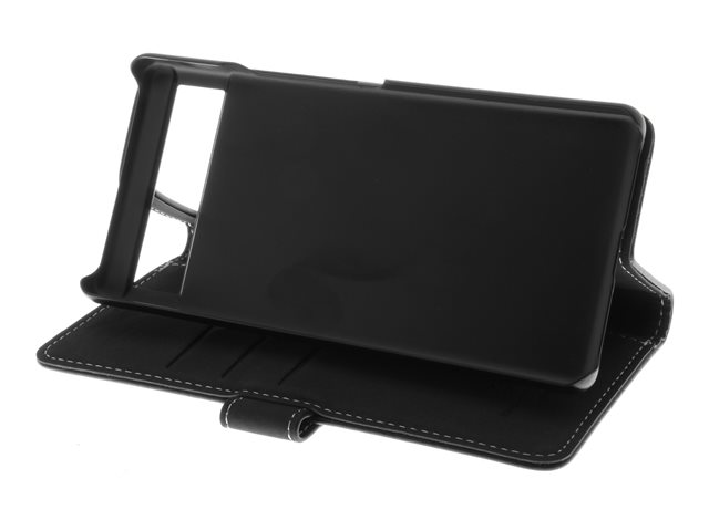 ægte læder, polykarbonat, karton+papir+aluminiumsfolie - sort - for Google Pixel 7a
