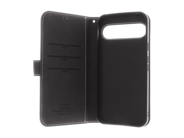 ægte læder, karton+papir+aluminiumsfolie, polycarbonat (PC) - sort - for Google Pixel 9, 9 Pro