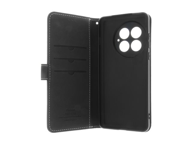 ægte læder, karton+papir+aluminiumsfolie, termoplastisk polyuretan (TPU), bomuldssyninger - sort - for OnePlus 13