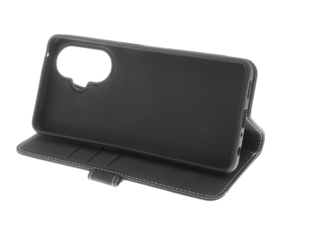 læder, termoplastisk polyuretan (TPU), karton+papir+aluminiumsfolie, 2 magnet - sort - for OnePlus Nord CE 3 Lite