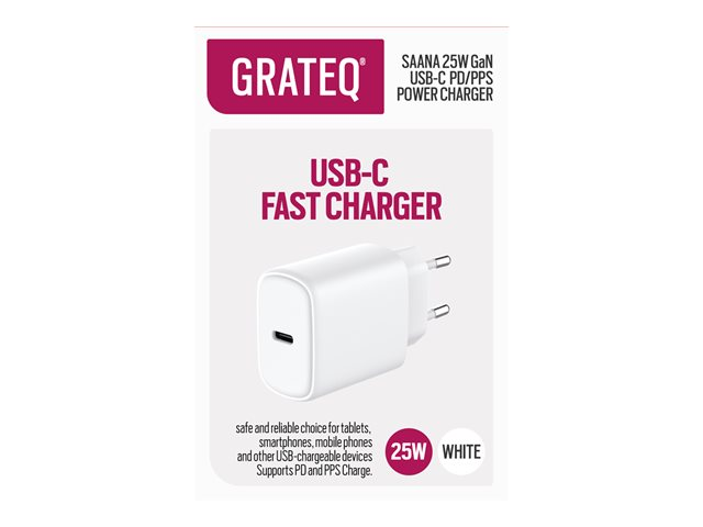 GaN - 25 Watt - 3 A - PD/PPS, Fast Charge (USB-C) - hvid
