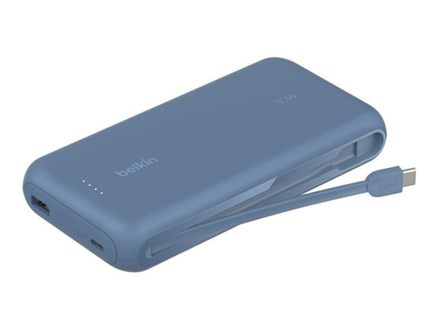 med integreret kabel - 20000 mAh - 30 Watt - PD - 3 output-stikforbindelser (2 x USB-C, USB) - blå