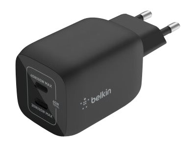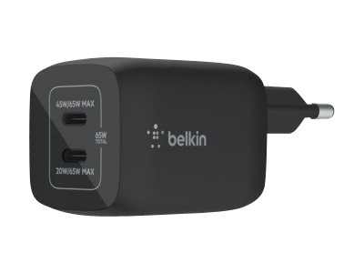 Strømforsyningsadapter - PPS-teknologi - 65 Watt - 3.25 A - PD 3.0, Fast Charge - 2 output-stikforbindelser (USB-C) - sort