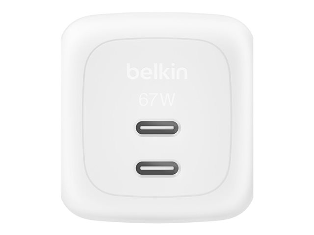 The Belkin BoostCharge Pro power adapter is designed to provide efficient and reliable charging for a variety of devices including tablets, smartphones, smart watches, headphones, and laptops. With a power output of 67 W and the ability to simultaneously charge two devices, this adapter meets the demands of modern technology users. Utilizing GaN technology, it remains compact and lightweight, making it perfect for on-the-go usage. Crafted from 90% recycled post-consumer plastic, this wall charger highlights sustainability alongside performance. The Belkin SmartProtect feature ensures safe charging for all your devices, while the inclusion of Power Delivery 3.1 and PPS technology allows for fast charge capabilities, significantly reducing downtime. This power adapter epitomizes efficiency without compromising environmental responsibility.
