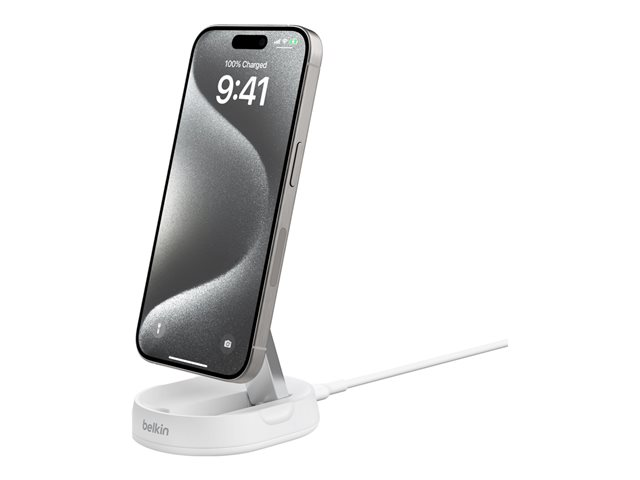 Trådløs opladningsstander - magnetisk + AC-strømadapter - 15 Watt - hvid