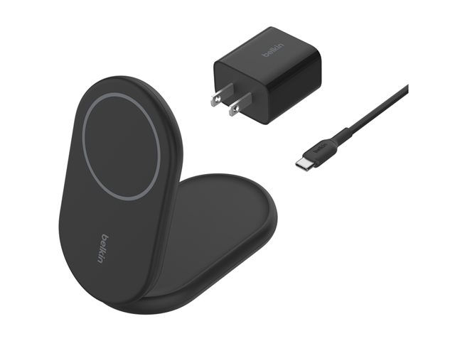 magnetisk, foldbar, med Qi2 + AC-strømadapter - 15 Watt - 3 A - Fast Charge, Power Delivery 3.1 - sort