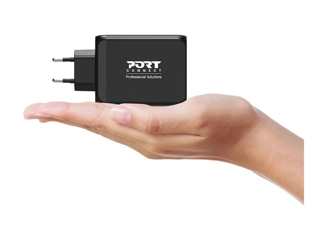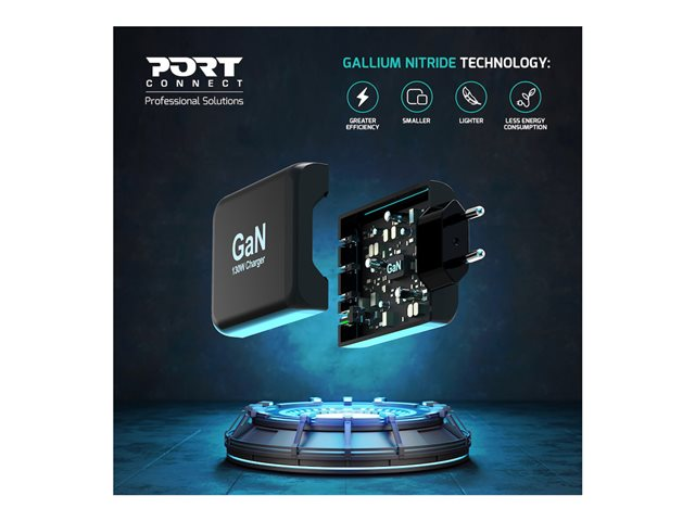 GaN - 130 Watt - 5 A - PD, QC 3.0 - 4 output-stikforbindelser (USB Type A, 3 x USB-C) - på kabel: USB-C - Europa