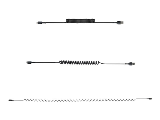 StarTech.com 1m (3ft) USB to Lightning Cable, MFi Certified, Coiled iPhone Charger Cable, Black, Durable and Flexible TPE Jacket Aramid Fiber, Heavy Duty Coil Charging Cable