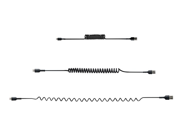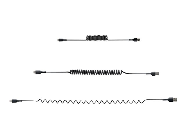 StarTech.com 50cm (20in) USB to Lightning Cable, MFi Certified, Coiled iPhone Charger Cable, Black, Durable and Flexible TPE Jacket Aramid Fiber, Heavy Duty Coil Charging Cable