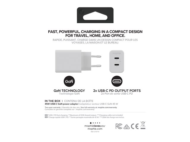 45 Watt - Fast Charge, PD - 2 output-stikforbindelser (24 pin USB-C) - hvid - Europa