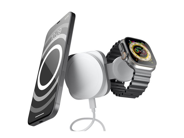 2-i-1 MagSafe + Watch - 20 Watt - på kabel: USB-C - hvid - for Apple AirPods with MagSafe Charging Case; AirPods Pro; iPhone 12, 13, 14