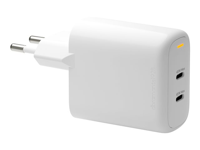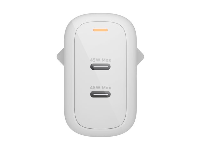 Strømforsyningsadapter - 45 Watt - PD, QC - 2 output-stikforbindelser (24 pin USB-C) - hvid - Europa