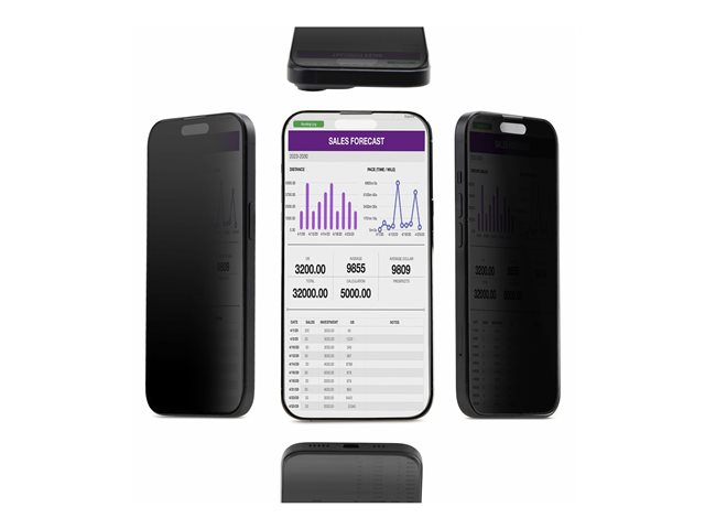 4-vejs, privatlivsfilter, til portræt/landskab, berøringsaktiveret, +/-30° synsvinkel - glas - med fortrolighedsfilter - 4-vejs - klæbemiddel - sort - for Apple iPhone 15 Plus