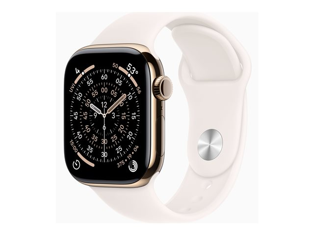 42 mm - guld titanium - smart ur med sportsbånd - fluoroelastomer - lyserød - båndstørrelse: S/M - 64 GB - Bluetooth, LTE, Wi-Fi 4, UWB - 5G - 34.6 g