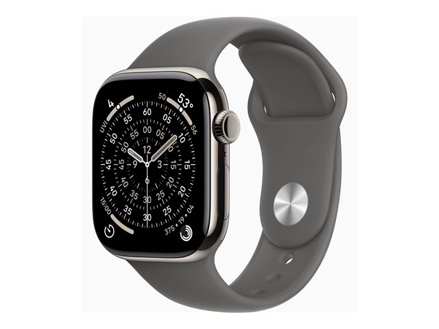 42 mm - naturlig titanium - smart ur med sportsbånd - fluoroelastomer - stengrå - båndstørrelse: S/M - 64 GB - Bluetooth, LTE, Wi-Fi 4, UWB - 5G - 34.6 g