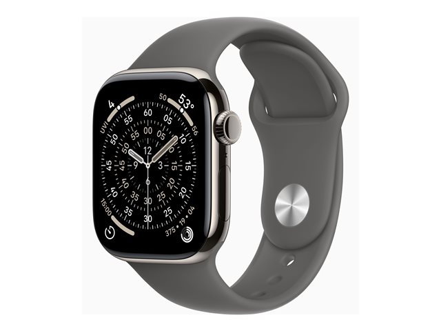42 mm - naturlig titanium - smart ur med sportsbånd - fluoroelastomer - stengrå - båndstørrelse: M/L - 64 GB - LTE, Wi-Fi 4, UWB, Bluetooth - 5G - 34.6 g