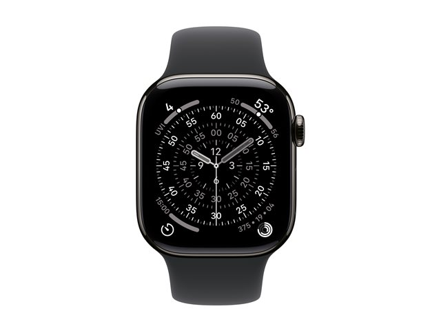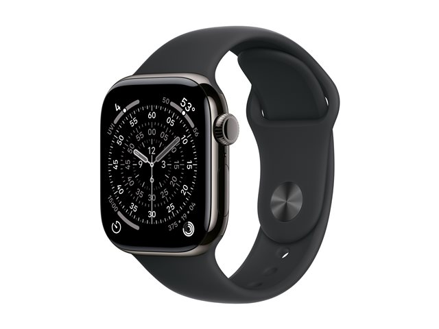42 mm - skifer titanium - smart ur med sportsbånd - fluoroelastomer - sort - båndstørrelse: M/L - 64 GB - LTE, Wi-Fi 4, UWB, Bluetooth - 5G - 34.6 g