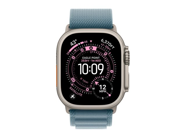 naturlig titanium - Ja smart ur med Alpine Loop - tekstil - lyseblå - båndstørrelse: L - 64 GB - LTE, NFC, Wi-Fi 4, UWB, Bluetooth - 5G - 61.6 g