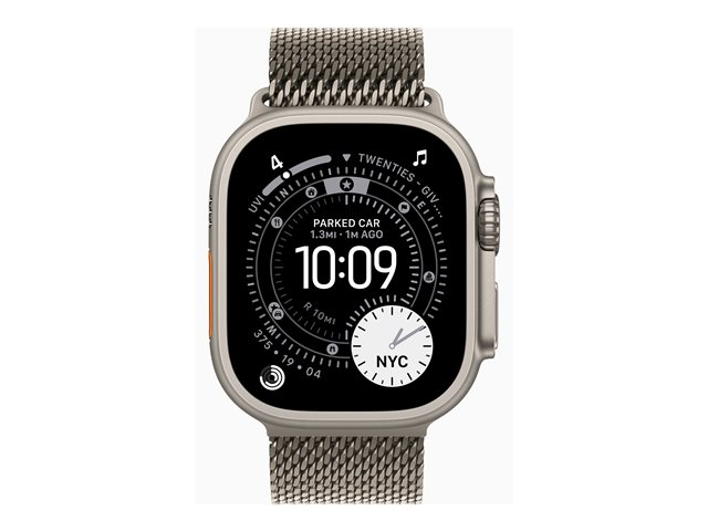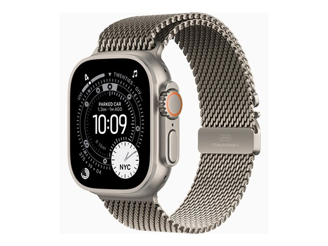 naturlig titanium - Ja smart ur med milanesisk løkke - båndstørrelse: M - 64 GB - LTE, NFC, Wi-Fi 4, UWB, Bluetooth - 5G - 61.6 g