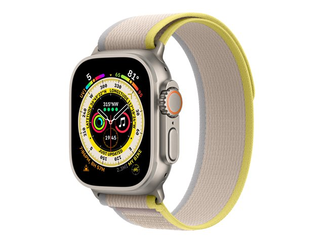 titanium - smart ur med Trail Loop - blød dobbeltlagsnylon - gul/beige - båndstørrelse: S/M - 32 GB - Wi-Fi, LTE, UWB, Bluetooth - 4G - 61.3 g