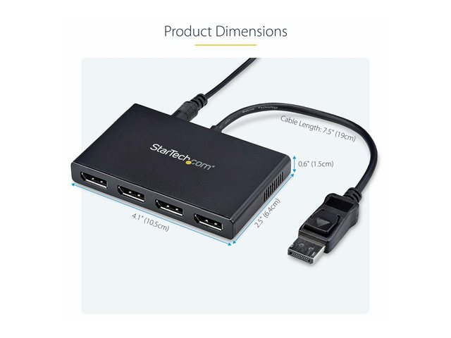 StarTech.com 4-Port Multi Monitor Adapter, DisplayPort 1.2 MST Hub, 4x 1080p, Video Splitter for Extended Desktop Mode on Windows PCs Only, DP to Quad DP Monitors MST Hub