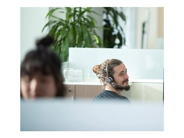 - Giv medarbejderne styrken og holdbarheden fra en forstærket, let hovedbøjle baseret på Poly contact center grade-design