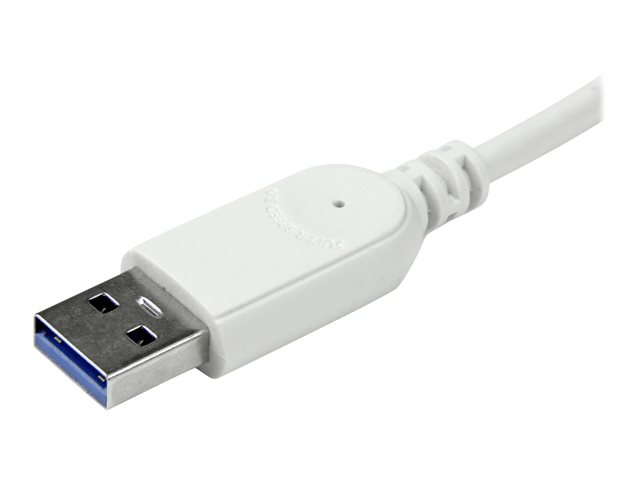 The hub features a built-in, 98 cm (38 in) cable that is longer than what most traditional hubs offer. The extended-length cable gives you the flexibility to place the hub and your devices exactly where you want them, and it ensures the hub can connect to your laptop or tablet regardless of where the laptop's USB 3.0 port is located.