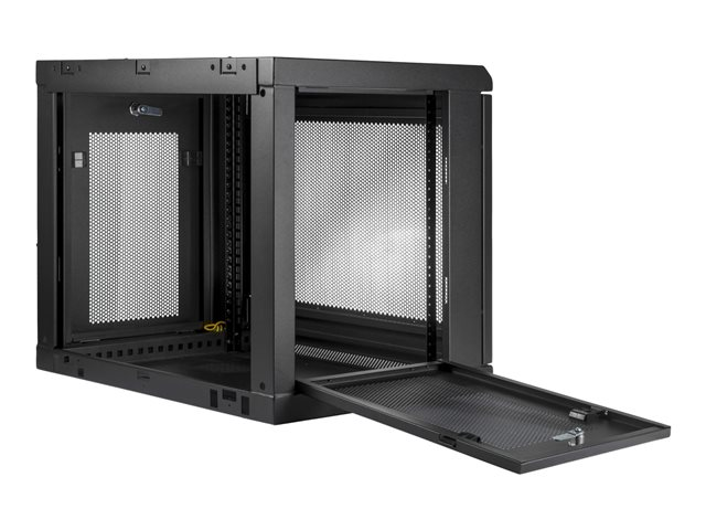 Save valuable floor space, by wall-mounting the enclosure. The wall-mounted design makes this enclosure the ideal solution for optimizing equipment storage in your classroom, retail store, server room or office. This rack also includes a 1U shelf that gives you a stable surface for storing your tools or placing equipment that's not rack-mountable.
