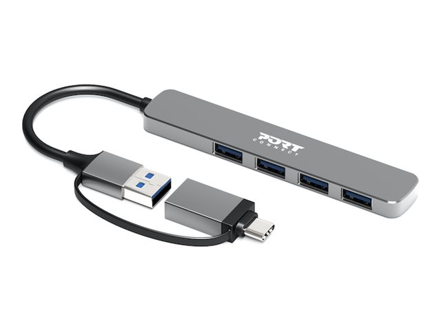 PORT Connect USB-A til USB-C-adapteren er en løsning til tilslutning af dine enheder. Denne desktop-hub har fire USB 3.0-porte, der giver en dataoverførselshastighed på op til 5 Gbps. Uanset om du skal tilslutte perifere enheder eller oplade enheder, er denne adapter designet til at imødekomme dine behov. Med sit slanke design og holdbare aluminiumshus kombinerer den funktionalitet med stil, hvilket gør den til et godt supplement til ethvert arbejdsområde. Den er nem at bruge med Plug-and-Play-kompatibilitet og opfylder flere standarder, hvilket sikrer pålidelighed og ydeevne til hverdagens opgaver.