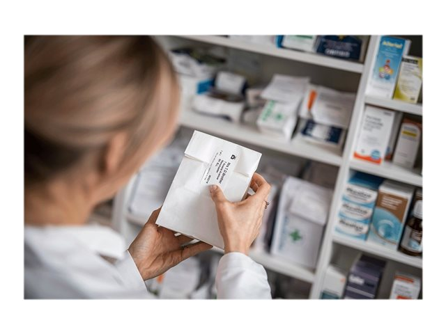 Print direkte termiske labels med en størrelse på 76 mm x 44 mm. Passer perfekt til print af prøvelabels, konsultationslabels, medicinposelabels og meget mere.