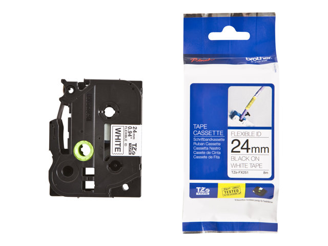 sort på hvid - Rulle (2,4 cm x 8 m) 1 kassette(r) fleksibelt ID-tape - for Brother PT-D600; P-Touch PT-3600, D610, D800, E550, P750, P900, P950; P-Touch EDGE PT-P750