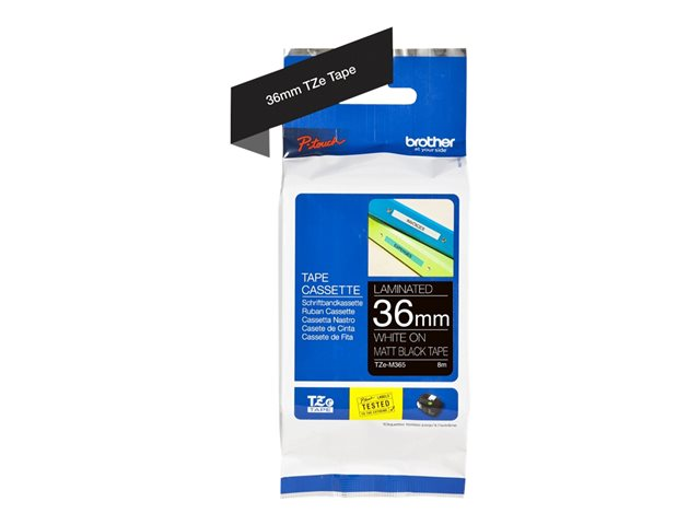 klæbemiddel - hvidt tryk på matsort - Rulle (3,6 cm x 8 m) 1 kassette(r) lamineret bånd - for P-Touch PT-530, PT-9200DX, PT-9200PC; P-Touch Cube XP PT-910BT