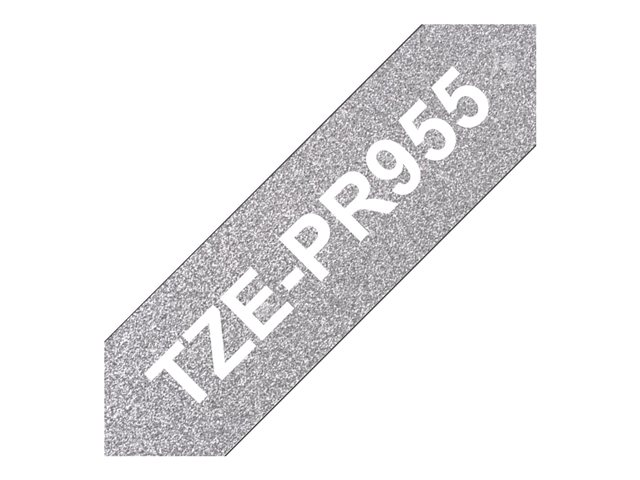 Brother TZe-PR955 - Hvidt tryk på premium glitter sølv